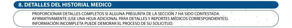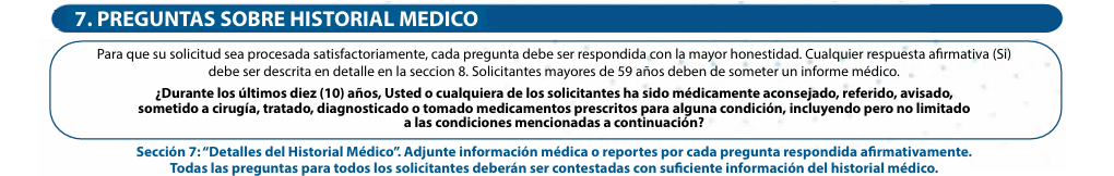 requiere cuidado o tratamiento médico después que la solicitus se segura sea firmada, pero antes de la fecha efectiva de la póliza, detalles completos deben ser proporcionados a la compañía aseguradora para